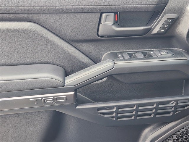 - remote keyless entry and remote illuminated entry~Interior@Qi-compatible wireless charging 44 with indicator light~Interior@Five USB-C ports 67~Interior@One center console 12V auxiliary power outlet 2 and two 120V/2400W AC power outlets 1 in the rear seat and cargo area~Interior@Single-zone automatic climate control with air filtration~Interior@Rear-seat air vents~Interior@Auto-dimming day/night rearview mirror with HomeLink® 26 universal transceiver~Interior@Second-row and cargo-area LED illumination~Interior@12 cup and bottle holders~Interior@TRD leather-wrapped shift knob~Interior@TRD Off-Road carpet floor mats 23~Interior@14-in. Audio Multimedia Display with 14-speaker JBL® 31 Premium Audio system including JBL® 31 FLEX portable Bluetooth®® speaker