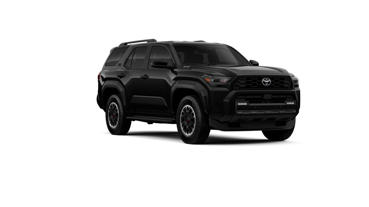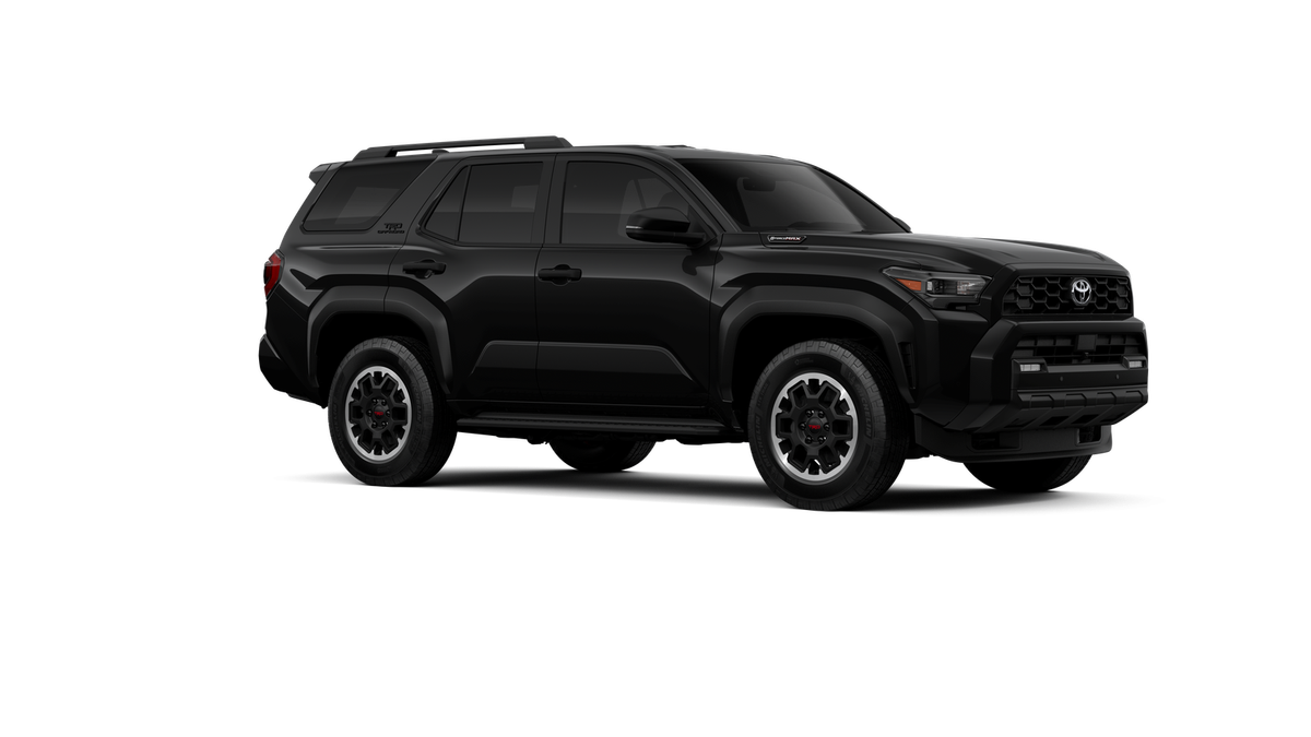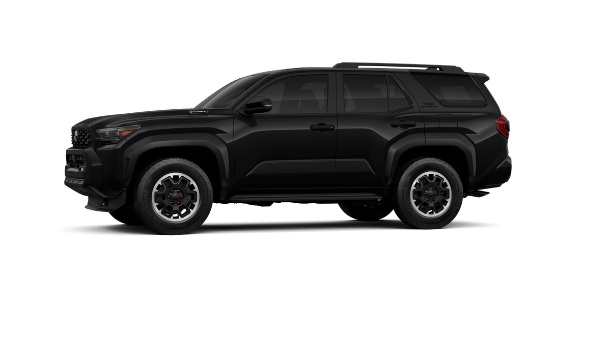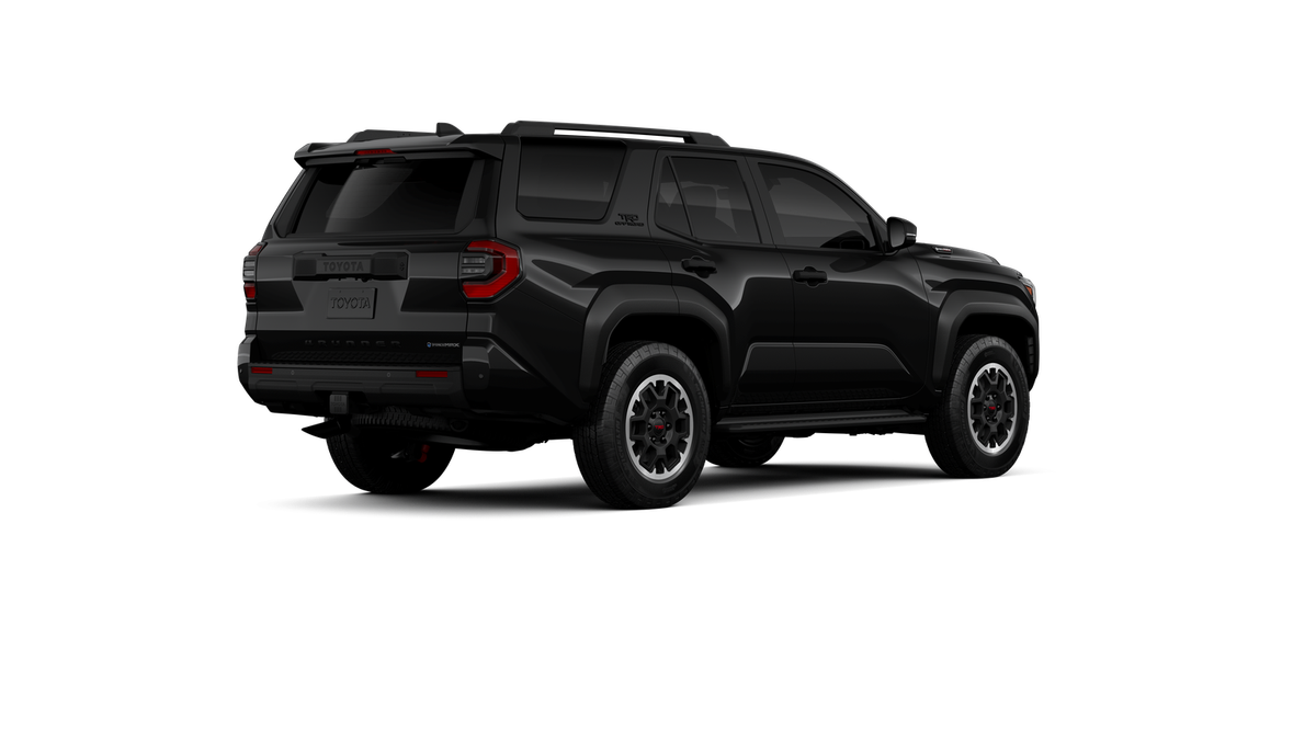 - door handles and overfenders; color-keyed rear spoiler; black "TRD OFF ROAD" and "4RUNNER" badges~Exterior@Black roof rails~Exterior@LED headlights with Daytime Running Lights (DRL)