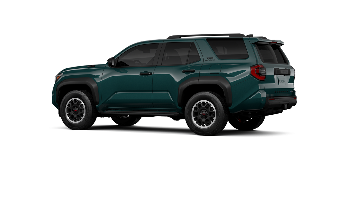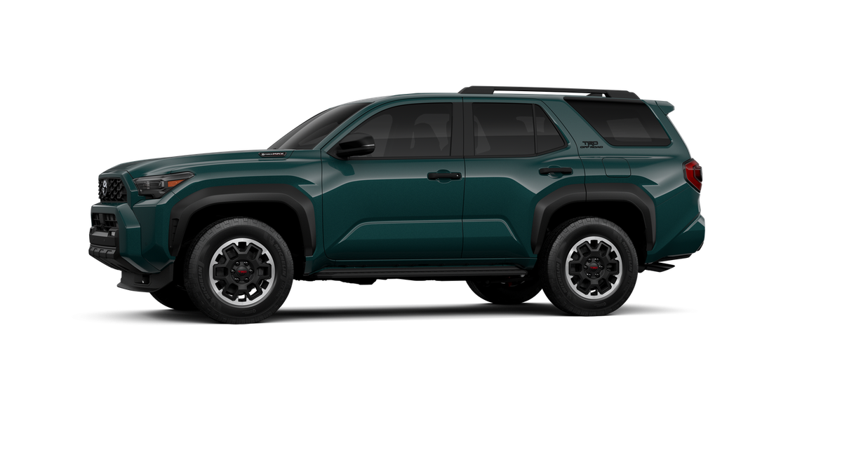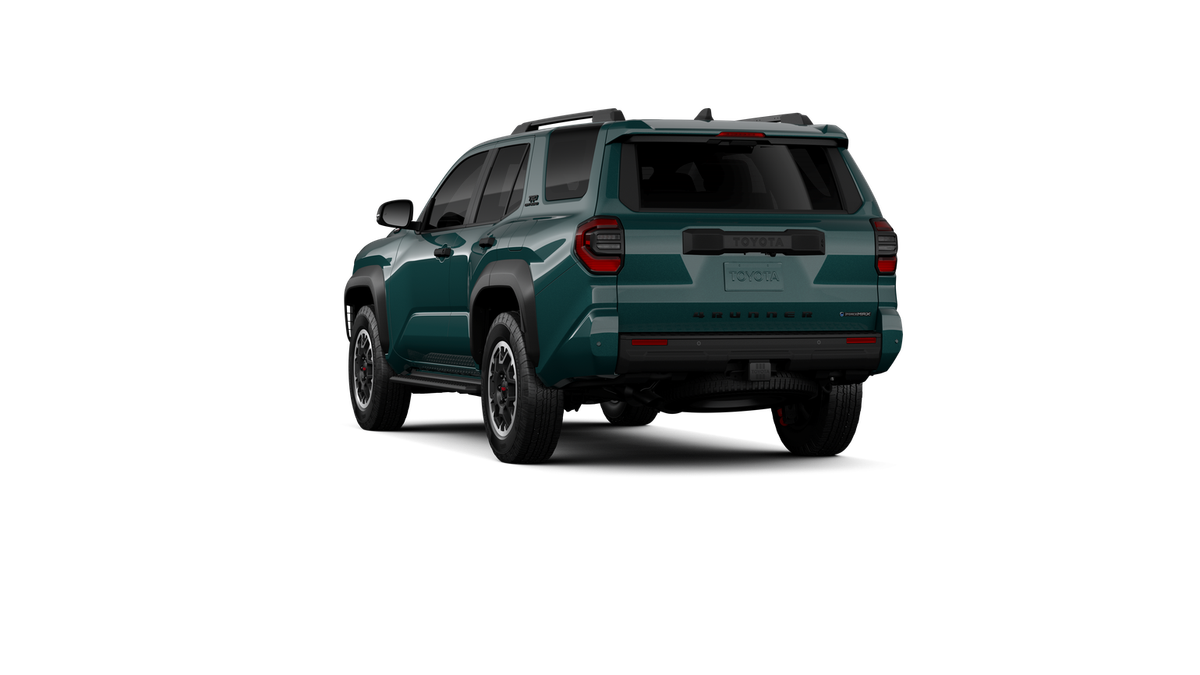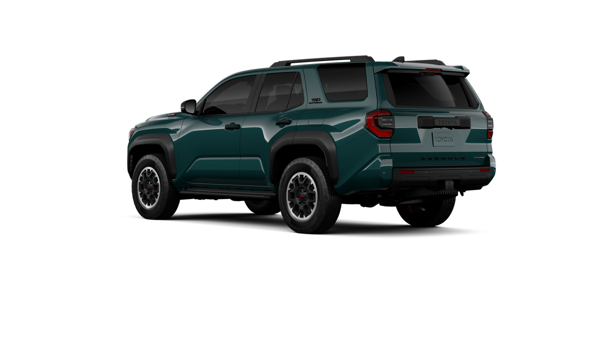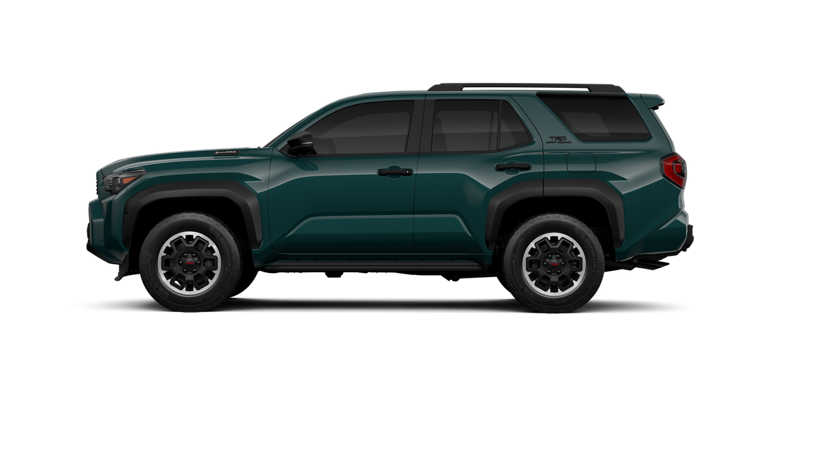 - door handles and overfenders; color-keyed rear spoiler; black "TRD OFF ROAD" and "4RUNNER" badges~Exterior@Black roof rails~Exterior@LED headlights with Daytime Running Lights (DRL)
