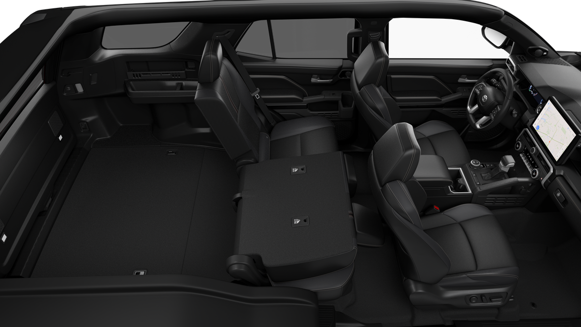 - and Custom Modes~Mechanical and Performance@Drive Modes: TOW/HAUL driving modes 61~Mechanical and Performance@Drivetrain: Full-time 4-Wheel Drive (4WD) with Torsen® 59 limited-slip center differential with locking feature~Mechanical and Performance@Body/Frame: Reinforced body-on-frame construction with TNGA-F high-strength boxed-steel ladder frame~Mechanical and Performance@Suspension: Independent double-wishbone front suspension with coil springs and stabilizer bar; Multi-link rear suspension with coil springs and stabilizer bar~Mechanical and Performance@Suspension: Adaptive Variable Suspension (AVS) system~Mechanical and Performance@Steering: Electric Power Steering (EPS); power-assisted rack-and-pinion~Mechanical and Performance@Brakes: Power-assisted front and rear ventilated disc brakes~Mechanical and Performance@Brakes: Electric Parking Brake (EPB) 6~Mechanical and Performance@Off-Road: Front and rear recovery points~Mechanical and Performance@Towing: Integrated towing receiver hitch and wiring harness with 4- and 7-pin connectors 61~Safety and Convenience@3-point seatbelts for all seating positions; driver's-side Emergency Locking Retractor (ELR) and Automatic/Emergency Locking Retractor (ALR/ELR) on all passenger seatbelts~Safety and Convenience@Toyota Safety Sense™ 3.0 (TSS 3.0) 66 — Pre-Collision System with Pedestrian Detection (PCS w/PD)