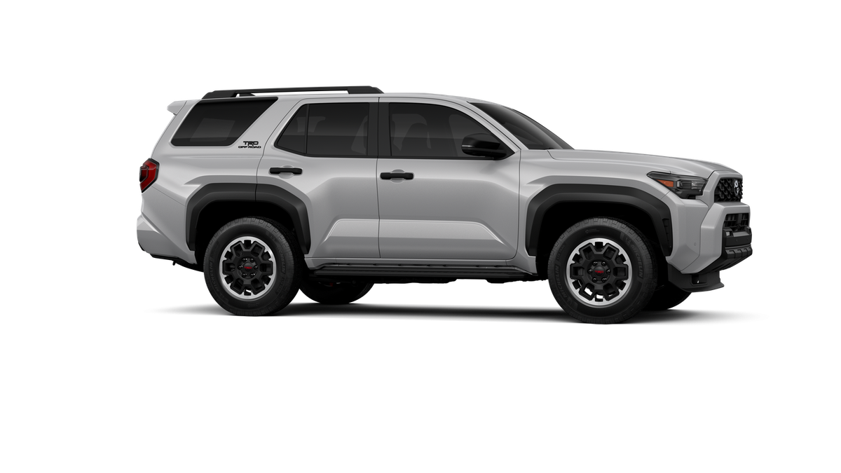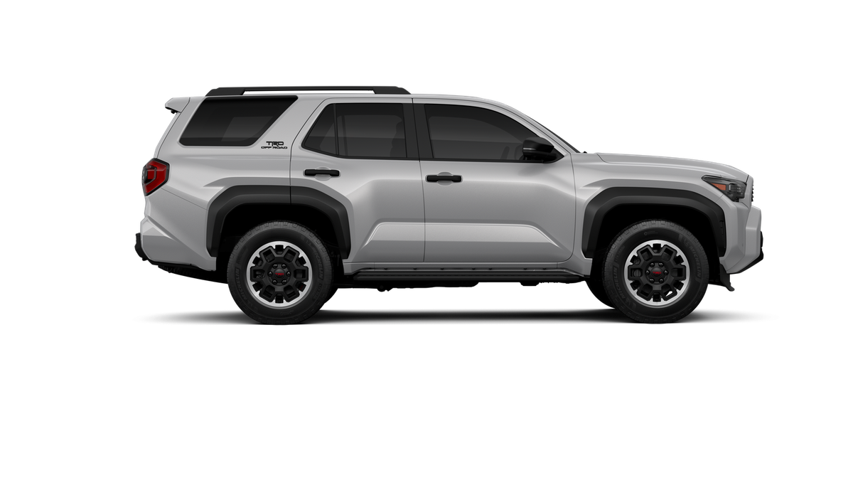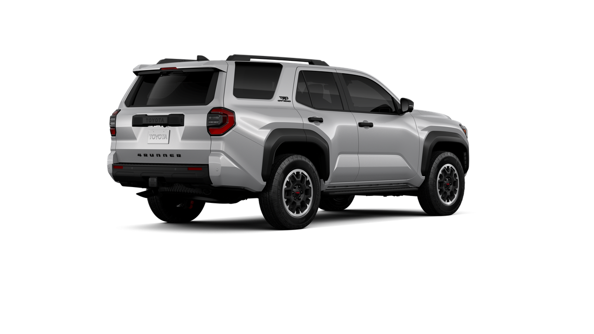 - door handles and overfenders; color-keyed rear spoiler; black "TRD OFF ROAD" and "4RUNNER" badges~Exterior@Black roof rails~Exterior@LED headlights with Daytime Running Lights (DRL)