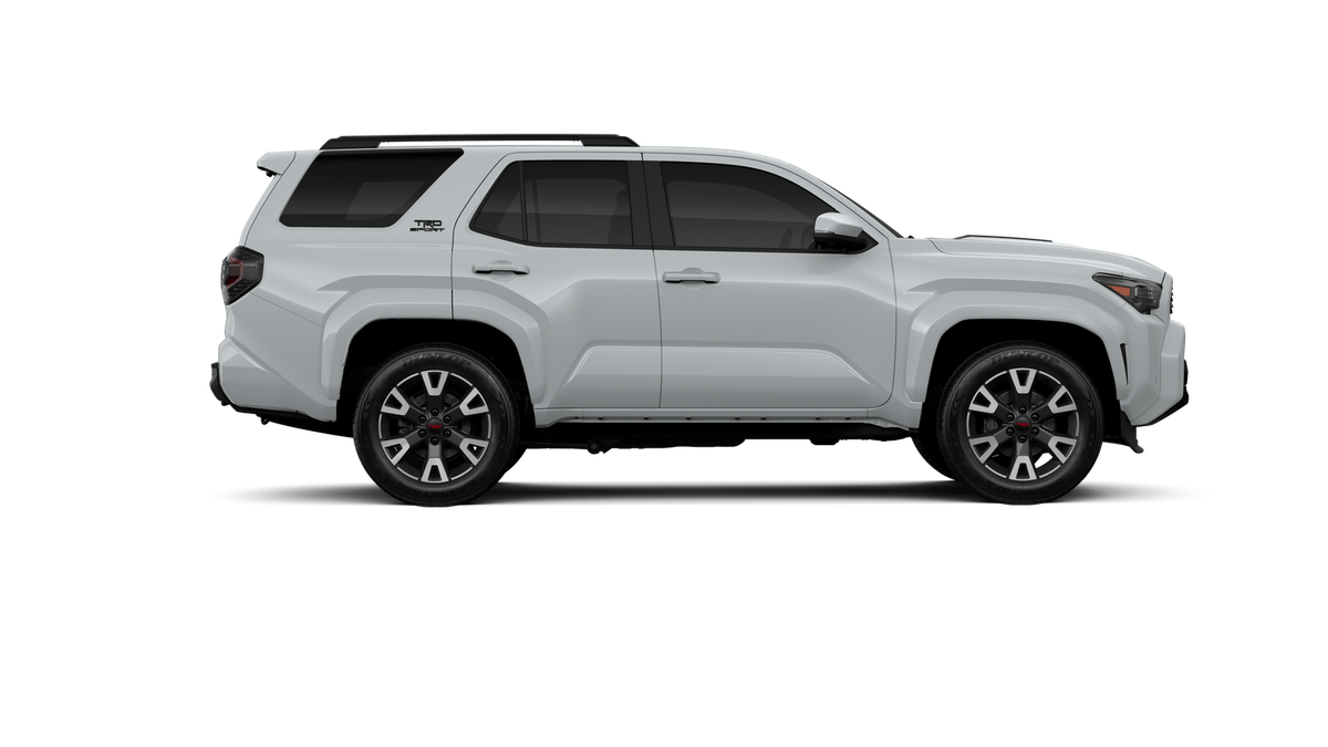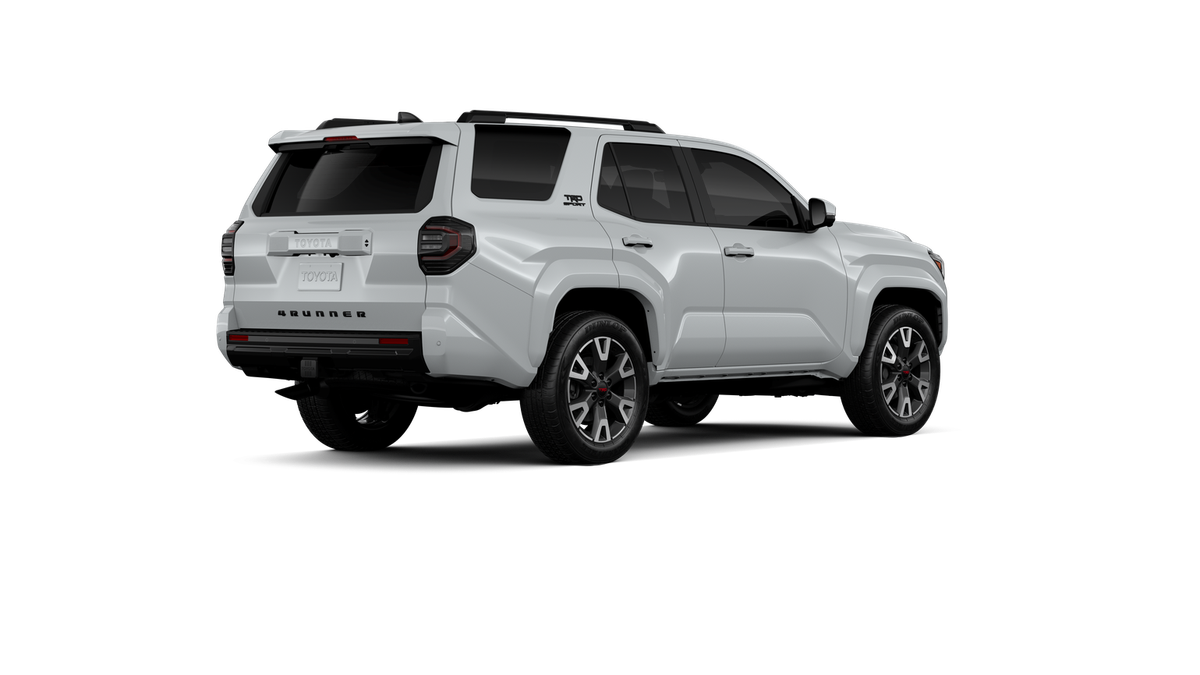 - overfenders and rear spoiler; black "TRD SPORT" and "4RUNNER" badges~Exterior@Gloss-black hood scoop~Exterior@Black roof rails~Exterior@LED headlights with Daytime Running Lights (DRL)