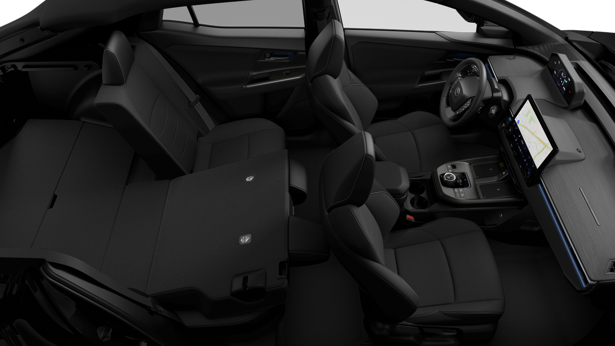 - two Qi-compatible wireless chargers 46 and front lower storage tray~Interior@Seatback pockets on driver and passenger sides~Interior@Two front and two rear cup holders; two front and two rear bottle holders~Interior@14-in. Toyota Audio Multimedia with six speakers