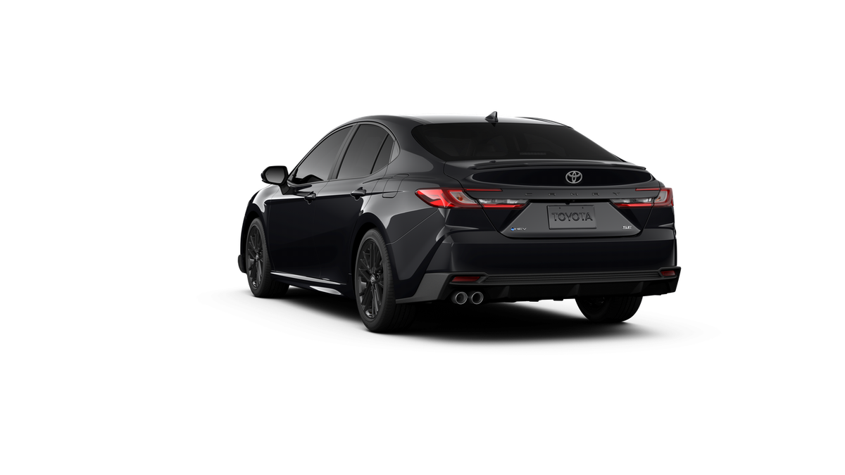 - Automatic High Beams (AHB) 7 and auto on/off~Exterior@Racing-inspired black air curtains and front side canards~Exterior@Black sport mesh front grille~Exterior@LED combination taillights with bulb turn signal and reverse light~Exterior@Black rear sport lower diffuser~Exterior@Sport side rocker panels~Exterior@Color-keyed rear spoiler~Exterior@Black window trim~Exterior@Color-keyed outside door handles~Exterior@Acoustic noise-reducing front windshield~Exterior@18-in. multi-spoke black-finished alloy wheels~Exterior@Washer-linked intermittent windshield wipers~Exterior@Chrome-finished rear "CAMRY" lettering~Exterior@Black rear "CAMRY" lettering~Interior@Two front and two rear cup holders; two front door and two rear bottle holders~Interior@Covered center console