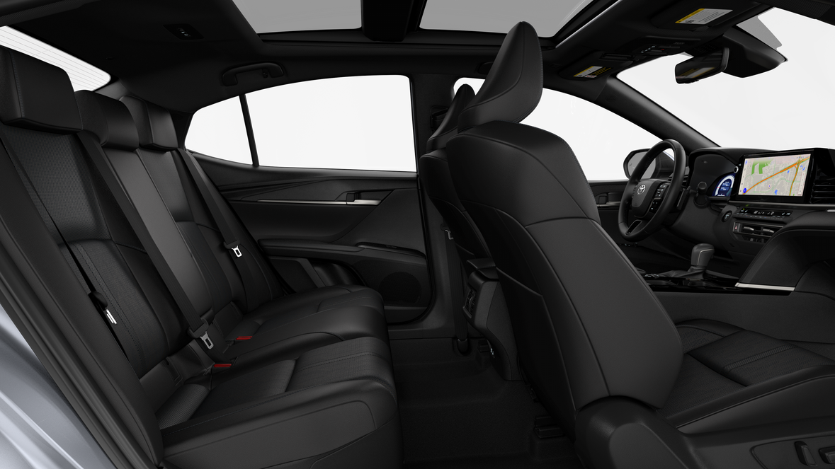 - Automatic High Beams (AHB) 7 and auto on/off~Exterior@Racing-inspired gloss-black air curtains and color-keyed front side canards~Exterior@Color-keyed sport mesh front grille~Exterior@Premium LED combination taillights~Exterior@Color-keyed rear sport lower diffuser~Exterior@Sport side rocker panels~Exterior@Black rear spoiler~Exterior@Black window trim~Exterior@Color-keyed outside door handles with touch-sensor lock/unlock feature~Exterior@Acoustic noise-reducing front windshield~Exterior@Acoustic noise-reducing front side glass~Exterior@19-in. smoked gray and black-finished alloy wheels~Exterior@Washer-linked intermittent windshield wipers~Exterior@Black rear "CAMRY" lettering~Interior@White LED ambient interior lighting~Interior@Two front and two rear cup holders; two front door and two rear bottle holders~Interior@Covered center console