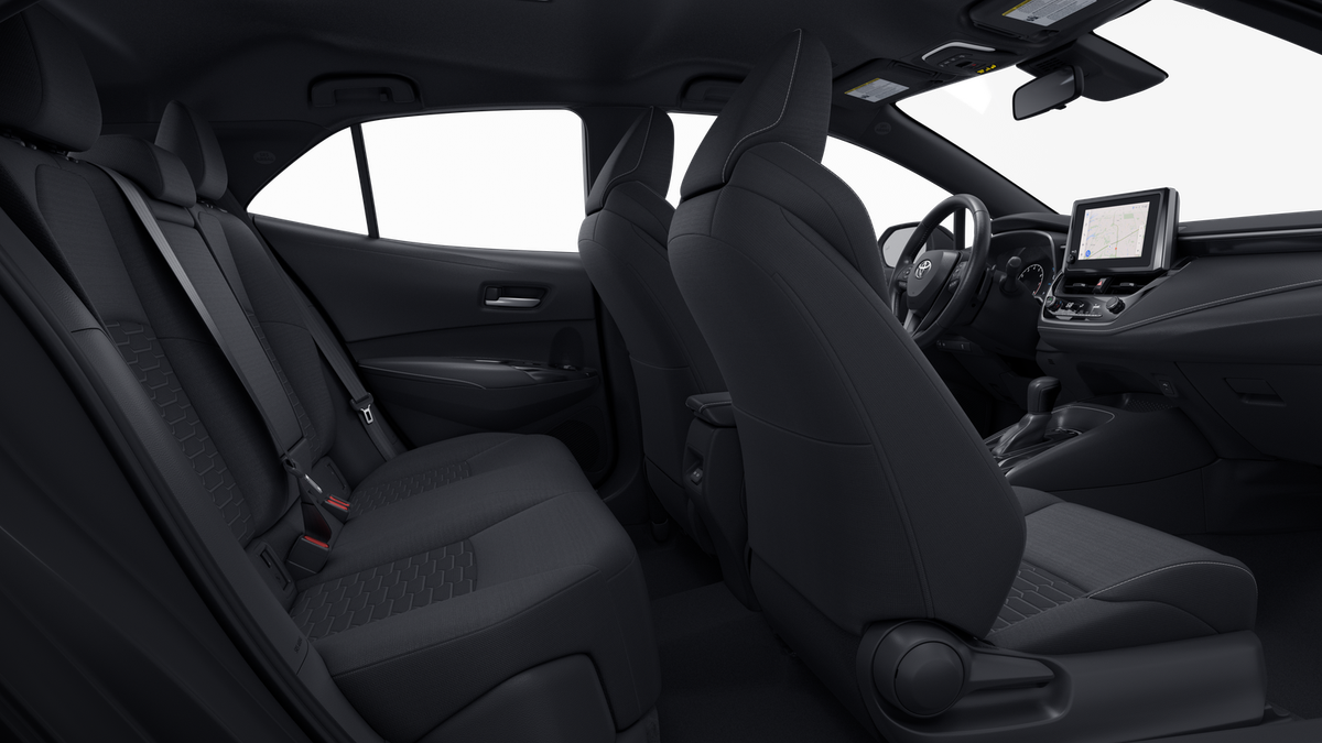 - floor undercover~Exterior@Color-keyed rear diffuser surround~Exterior@Blind Spot Monitor 10 warning indicators on side mirrors~Exterior@LED taillights~Exterior@Automatic High Beams (AHB) 6~Exterior@LED headlights and LED Daytime Running Lights (DRL) with auto on/off feature~Exterior@Black roof-mounted shark-fin antenna~Exterior@Single exhaust~Exterior@Color-keyed outside door handles~Exterior@Gloss-black front upper grille surround~Exterior@Color-keyed front lower grille surround~Exterior@Color-keyed roof~Exterior@Color-keyed rear spoiler~Exterior@Black heated power outside mirrors with turn signal indicators~Interior@ISO-FIX Child Restraint System (CRS) lower anchors for outboard rear seating positions (left and right seats)~Interior@Automatic climate control~Interior@Qi-compatible wireless charging 34~Interior@Fabric sport seats with 6-way adjustable driver's seat with seatback pocket; 4-way adjustable front passenger seat with seatback pocket~Interior@60/40 split fold-down rear seats with center armrest and cup holders~Interior@Two front USB-C ports 59~Interior@Two rear USB-C ports 59~Interior@One 12V auxiliary power outlet 1~Interior@Covered center console