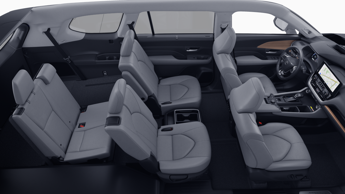 - fold-down third-row seats with sliding headrests and recline function~Interior@Digital Key 18 capability — Digital Key 18 enables smartphone to be used instead of a physical key (Remote Connect 49 subscription required)~Interior@Power door locks with shift-linked automatic lock/unlock feature~Interior@Manual second-row retractable rear window sunshades~Interior@Qi-compatible wireless smartphone charging 47 with charge indicator light~Interior@One 120V auxiliary AC power outlet 1~Interior@Seven USB-C ports 72 (one media port and six charging ports) and two 12V outlets 2~Interior@Soft-touch roll-top center console with removable utility tray~Interior@13 cup and bottle holders~Interior@Power windows with auto up/down in all positions and jam protection
