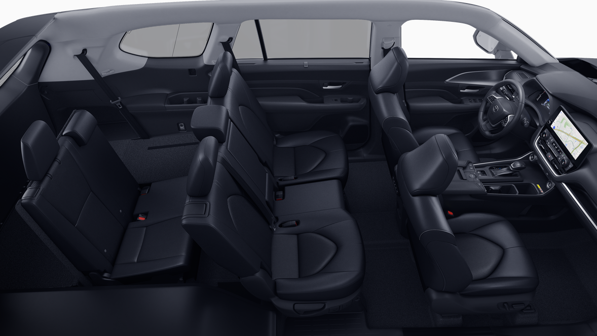 - fold-down third-row seats with sliding headrests and recline function~Interior@Digital Key 18 capability — Digital Key 18 enables smartphone to be used instead of a physical key (Remote Connect 49 subscription required)~Interior@Power door locks with shift-linked automatic lock/unlock feature~Interior@Manual second-row retractable rear window sunshades~Interior@Qi-compatible wireless smartphone charging 47 with charge indicator light~Interior@Seven USB-C ports 72 (one media port and six charging ports) and two 12V outlets 2~Interior@Soft-touch roll-top center console with removable utility tray~Interior@13 cup and bottle holders~Interior@Power windows with auto up/down in all positions and jam protection