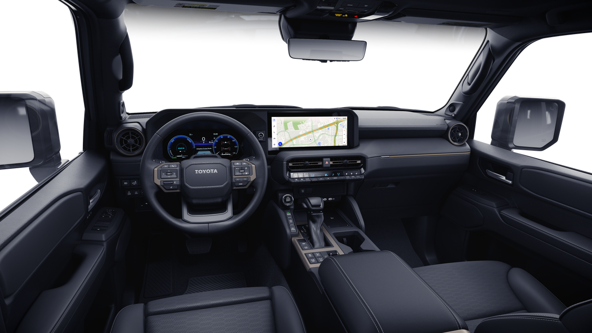 Land Cruiser Premium Package — 14-speaker JBL® 30 Premium Audio including subwoofer and amplifier, illuminated entry with illuminated running boards, Digital Key 16 capability, power moonroof w/sunshade, digital rearview mirror, leather-trimmed memory driver's seats. power front seats. Head-Up Disolay (HUD), Lane Change Assist (LCA), 31 Front Cross-Traffic Alert (FCTA), 22 and Traffic Jam Assist (TJA) 56 (requires Drive Connect 18 trial/subscription; 1-vear trial included.) 4G network dependent.