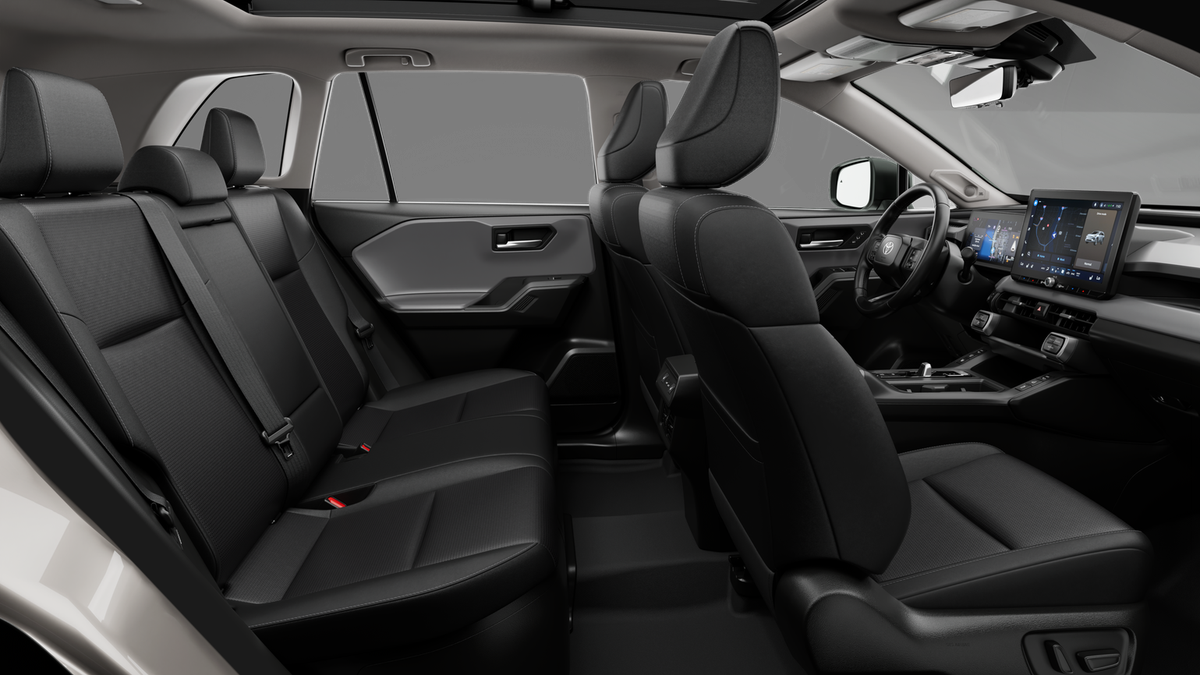 - two 15w rear USB-C charging ports 78 and one center console media USB-C charging port 78~Interior@Dual Qi-compatible wireless charging with charge indicator light 48~Interior@Power windows with auto up/down and jam protection in all positions~Interior@Power door locks with shift-linked automatic lock/unlock feature~Interior@Rear liftgate window defogger~Interior@Drive Recorder - integrated drive recording system that utilizes front and rear (front and PVM if equipped) camera systems for video recording~Interior@12.9-in. Toyota Audio Multimedia