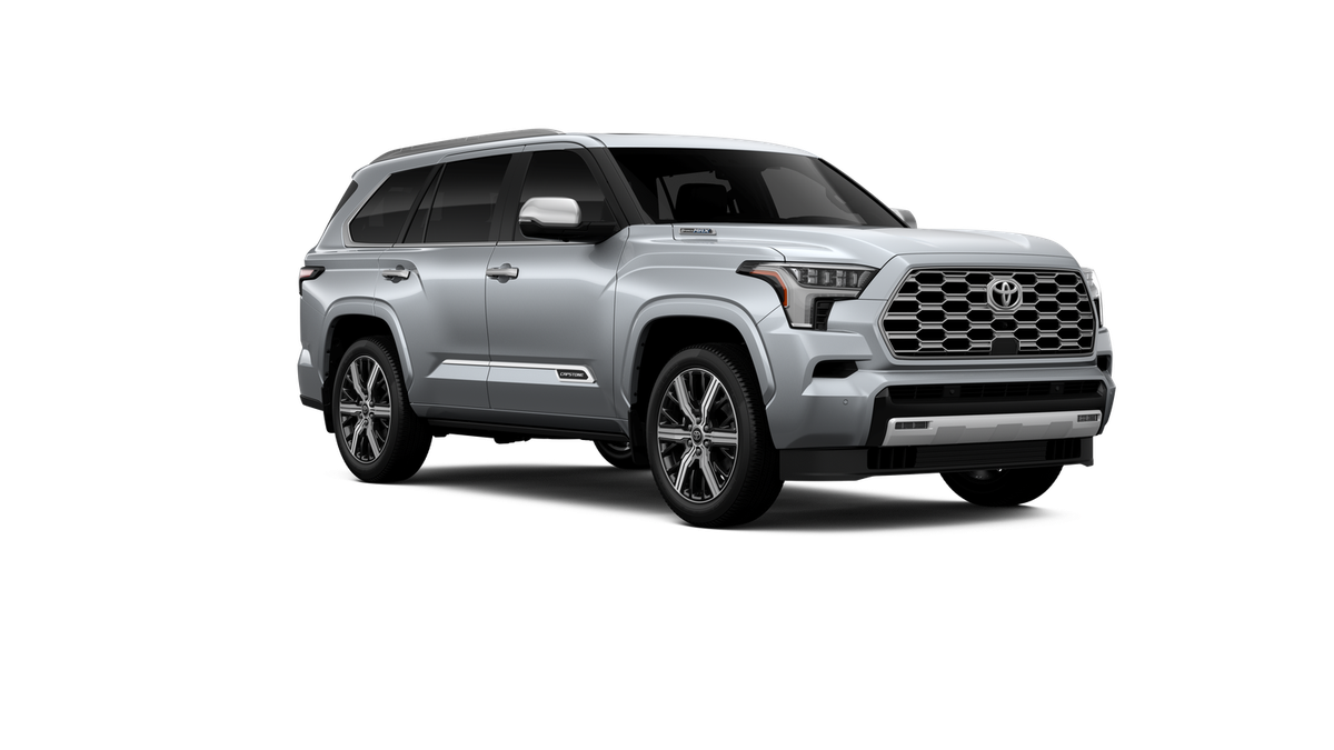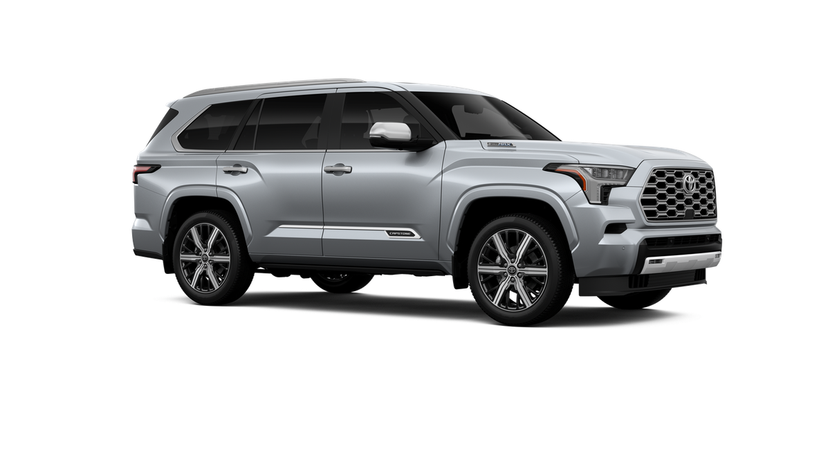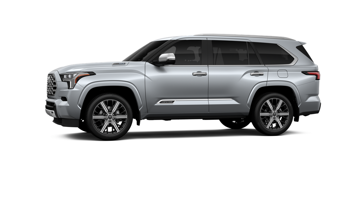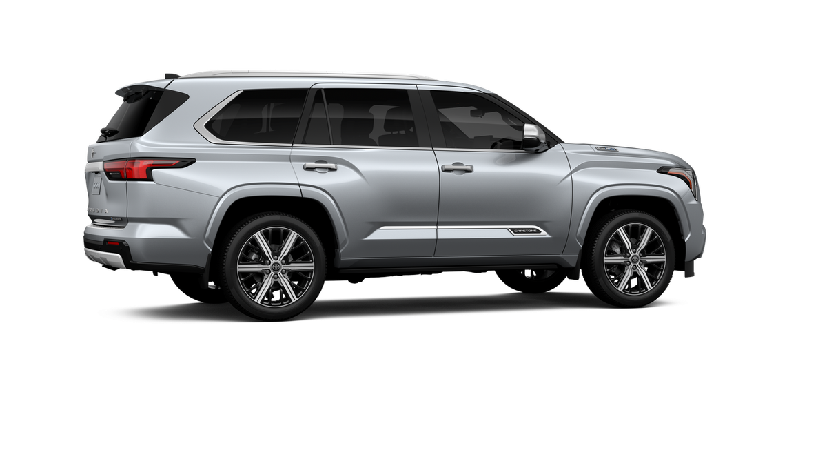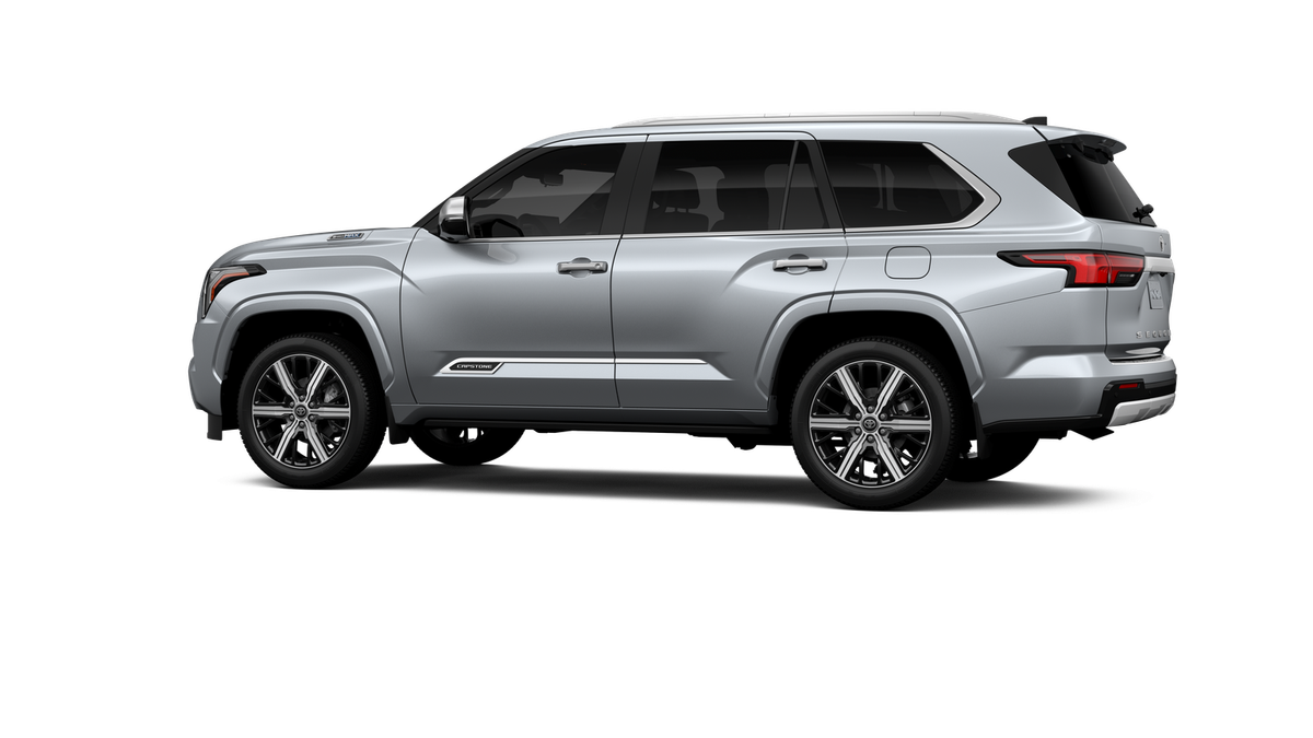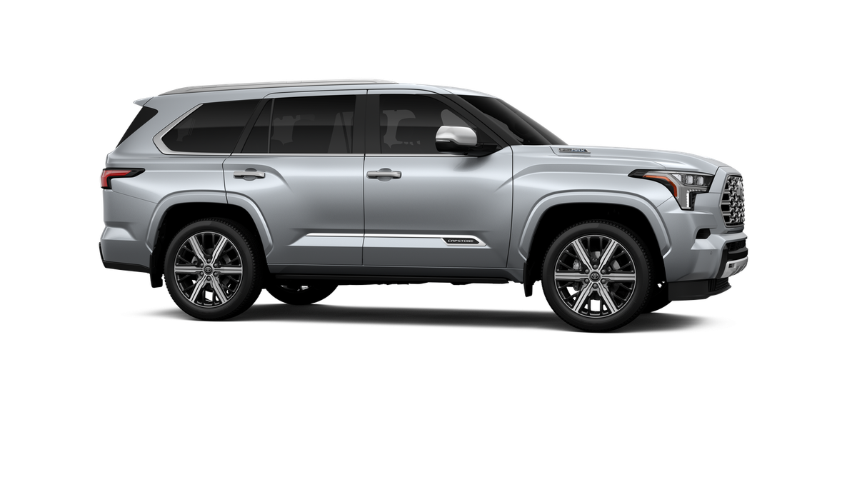 - Bright-chrome "SEQUOIA" rear door badge; chrome "CAPSTONE" door badge, garnish and window molding; color-keyed overfenders