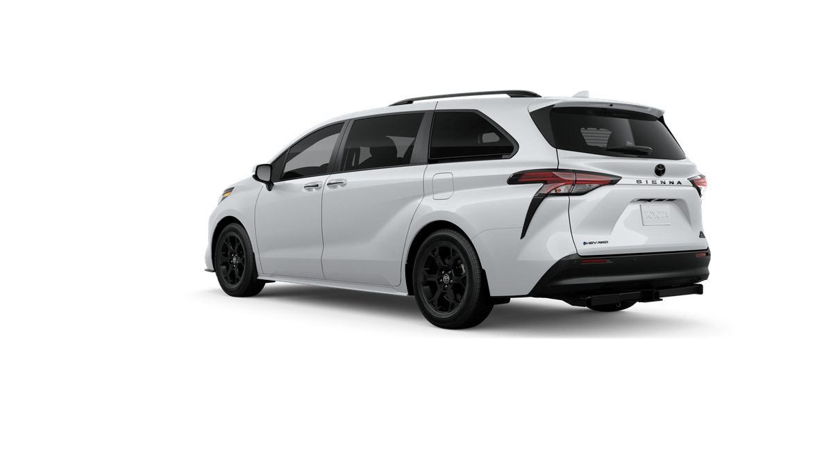 - Exterior@Black roof rails~Exterior@Color-keyed heated power outside mirrors with blind spot warning indicators 11~Exterior@Black outside door handles~Exterior@Black AWD badge~Exterior@Black Toyota emblem and grade badge~Exterior@Black rear lower bumper~Exterior@Power tilt/slide moonroof with sunshade~Exterior@Integrated wide-angle LED fog lights~Exterior@Variable windshield wipers~Exterior@Intermittent rear window wiper~Exterior@Privacy glass on rear windows~Exterior@LED headlights and LED Daytime Running Lights (DRL) with auto on/off feature~Exterior@Black grille~Exterior@LED taillights and stop lights~Exterior@Towing hitch receiver and wiring harness with 4-pin connector 63 57~Exterior@Color-keyed rear spoiler with LED center high-mount stop light~Exterior@Power liftgate with jam protection~Exterior@Hands-free dual power sliding side doors 45~Exterior@Color-keyed roof-mounted shark-fin antenna~Exterior@18-in. 6-spoke dark-finished alloy wheels~Interior@Smart Key System on five doors with Push Button Start and remote illuminated entry~Interior@Overhead console with maplights and dome lights
