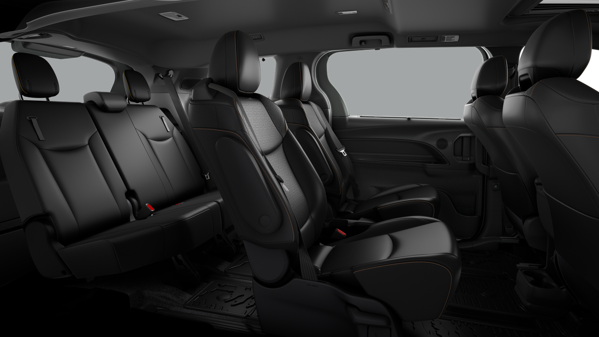 - jam protection in all positions~Interior@Rear window defogger with timer~Interior@Power door locks with shift-activated locking feature and anti-lockout feature~Interior@Manual second- and third-row sunshades~Interior@Auto-dimming rearview mirror and HomeLink® 27 universal transceiver~Interior@SofTex®-trimmed sport heated front seats with seatback pockets; 8-way power-adjustable driver’s seat with power lumbar; 4-way power-adjustable front passenger seat~Interior@7-passenger seating with SofTex®-trimmed sport second-row captain's chairs with super-long-slide feature~Interior@12.3-in. Toyota Audio Multimedia
