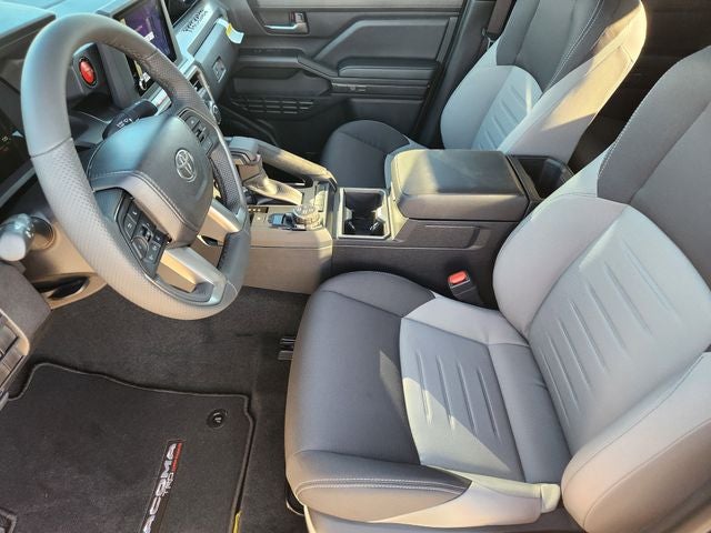 • auto on/off feature and manual leveling adjustment~Exterior@LED fog lights~Exterior@Deck rail system with four adjustable tie-down cleats and fixed cargo bed tie-down points~Exterior@5-ft. bed~Exterior@Lightweight "TACOMA" stamped tailgate with damper 61~Interior@Fabric-trimmed seats; 6-way manually adjustable driver and front passenger seats with 2-way power-adjustable lumbar support on driver's seat only~Interior@Leather-trimmed manual tilt/telescopic steering wheel with phone