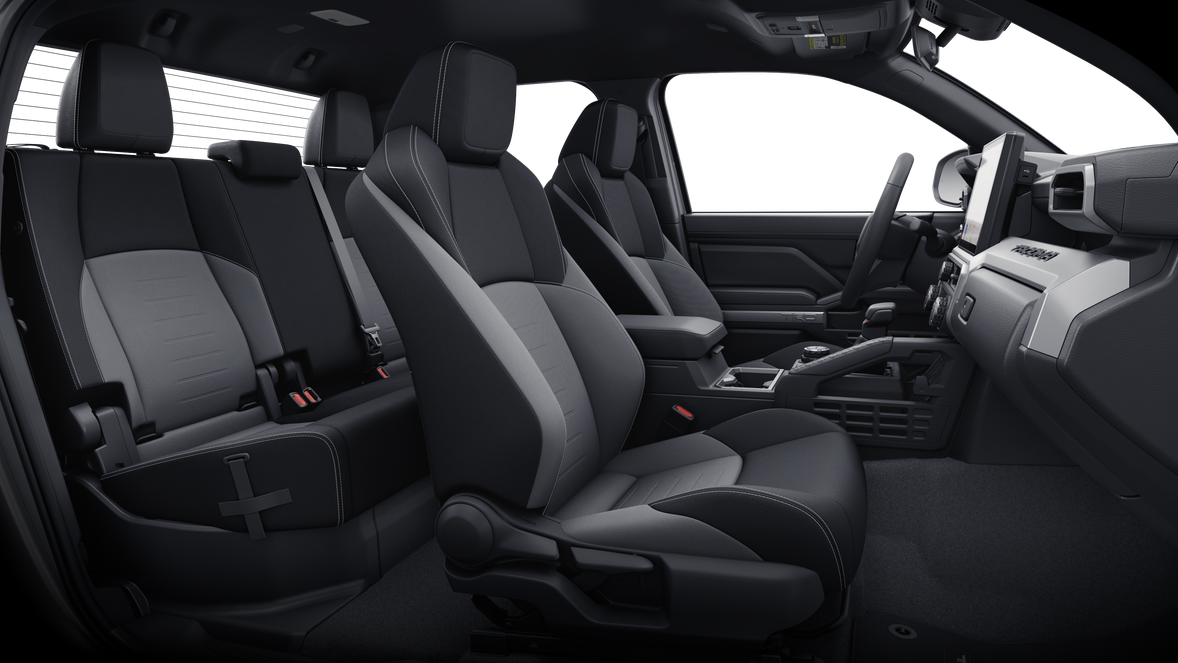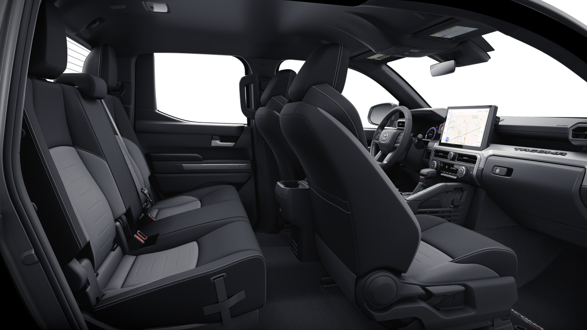 • auto on/off feature and manual leveling adjustment~Exterior@LED fog lights~Exterior@Deck rail system with four adjustable tie-down cleats and fixed cargo bed tie-down points~Exterior@5-ft. bed~Exterior@Lightweight "TACOMA" stamped tailgate with damper 61~Interior@Fabric-trimmed seats; 6-way manually adjustable driver and front passenger seats with 2-way power-adjustable lumbar support on driver's seat only~Interior@Leather-trimmed manual tilt/telescopic steering wheel with phone
