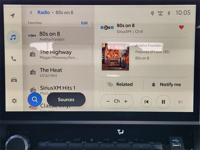 - Leather-wrapped power tilt/telescopic steering wheel with phone, audio, display/infotainment, and Driver Assist controls