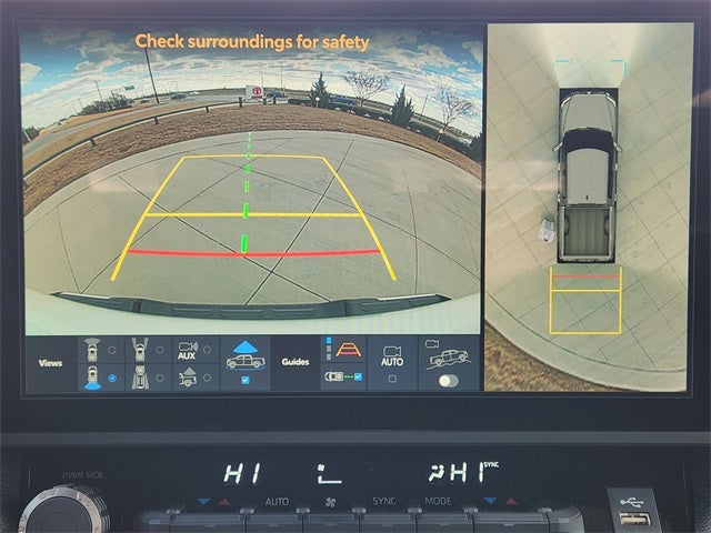 48. The Panoramic View Monitor does not provide a comprehensive view of the area surrounding your vehicle. Look around to confirm clearance. See Owner’s Manual for limitations.
