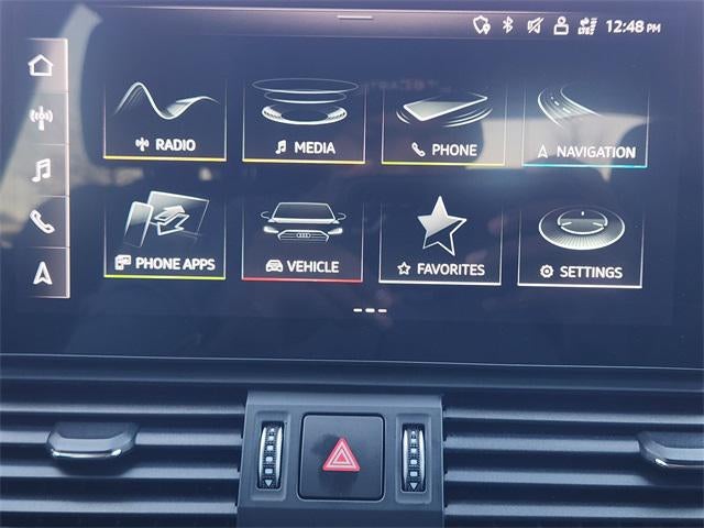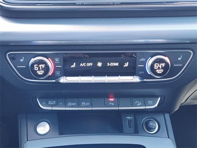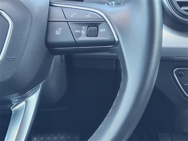 10 Speakers, 4-Wheel Disc Brakes, ABS brakes, Air Conditioning, Alloy wheels, AM/FM radio, Auto High-beam Headlights, Auto-dimming Rear-View mirror, Automatic temperature control, Brake assist, Bumpers: body-color, Compass, Delay-off headlights, Driver door bin, Driver vanity mirror, Dual front impact airbags, Dual front side impact airbags, Electronic Stability Control, Emergency communication system: Audi connect CARE, Exterior Parking Camera Rear, Four wheel independent suspension, Front anti-roll bar, Front Bucket Seats, Front Center Armrest, Front dual zone A/C, Front fog lights, Front reading lights, Garage door transmitter: HomeLink, Genuine wood console insert, Genuine wood dashboard insert, Genuine wood door panel insert, Heated 8-Way Power Front Bucket Sport Seats, Heated door mirrors, Heated front seats, Illuminated entry, Leather Seating Surfaces, Leather Shift Knob, Low tire pressure warning, Occupant sensing airbag, Outside temperature display, Overhead airbag, Overhead console, Panic alarm, Passenger door bin, Passenger vanity mirror, Power door mirrors, Power driver seat, Power Liftgate, Power moonroof, Power passenger seat, Power steering, Power windows, Radio data system, Radio: Audi Sound System, Rain sensing wipers, Rear air conditioning, Rear anti-roll bar, Rear fog lights, Rear reading lights, Rear seat center armrest, Rear window defroster, Rear window wiper, Remote keyless entry, Security system, Speed control, Speed-sensing steering, Speed-Sensitive Wipers, Split folding rear seat, Spoiler, Steering wheel mounted audio controls, Tachometer, Telescoping steering wheel, Tilt steering wheel, Traction control, Trip computer, Turn signal indicator mirrors, Variably intermittent wipers, Wheels: 19 5-Double-Arm Design Bi-Color Finish.