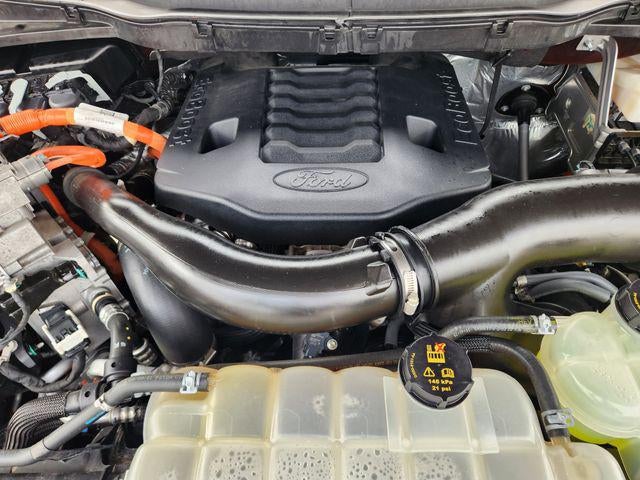 3.5L PowerBoost Full-Hybrid V6, 4WD, 2nd Row Heated Seats, 4-Wheel Disc Brakes, 6 Chrome Running Board, 7 Speakers, ABS brakes, Accent-Color Angular Step Bars, Adjustable pedals, Air Conditioning, AM/FM radio: SiriusXM with 360L, Auto High-beam Headlights, Auto-dimming door mirrors, Auto-dimming Rear-View mirror, Automatic temperature control, Body-Color Front & Rear Bumpers, Box Side Decals, Brake assist, Bumpers: chrome, Chrome 2-Bar Grille w/4 Minor Bars, Chrome Door & Tailgate Handles w/Body-Color Bezel, Chrome Single-Tip Exhaust, Chrome Skull Caps on Exterior Mirrors, Class IV Trailer Hitch Receiver, Compass, Connected Built-In Navigation, Dark 2-Bar & 1 Minor Bar Style Grille, Delay-off headlights, Driver door bin, Driver vanity mirror, Dual front impact airbags, Dual front side impact airbags, Electronic Stability Control, Emergency communication system: SYNC 4 911 Assist, Equipment Group 502A High, Evasive Steering Assist, Exterior Parking Camera Rear, Ford Co-Pilot360 Assist 2.0, Front anti-roll bar, Front Center Armrest w/Storage, Front dual zone A/C, Front fog lights, Front reading lights, Front wheel independent suspension, Fully automatic headlights, Heated door mirrors, Heated front seats, Heated Steering Wheel, Illuminated entry, Intelligent Adaptive Cruise Control w/Stop & Go, Intersection Assist, Lariat Chrome Appearance Package, Lariat Sport Appearance Package, Leather-Trimmed 40/20/40 Front Seat, Leather-Trimmed Bucket Seats, LED Projector w/Dynamic Bending Headlamps, LED Sideview Mirror Spotlights, Low tire pressure warning, Memory seat, Navigation system: Connected Navigation (90-Day Trial), Occupant sensing airbag, Onboard 400W Outlet, Outside temperature display, Overhead airbag, Overhead console, Panic alarm, Passenger door bin, Passenger vanity mirror, Pedal memory, Plastic Drop-In Bedliner, Power door mirrors, Power driver seat, Power Glass Sideview Mirr w/Chrome Skull Caps, Power passenger seat, Power steering, Power Tilt/Telescoping Steering Column w/Memory, Power windows, Radio data system, Radio: AM/FM SiriusXM w/360L, Radio: B&O Unleashed Sound System by Bang & Olufsen, Rain-Sensing Wipers, Rear reading lights, Rear seat center armrest, Rear step bumper, Rear window defroster, Remote keyless entry, Security system, Speed control, Speed Sign Recognition, Speed-sensing steering, Split folding rear seat, Steering wheel mounted audio controls, SYNC 4 w/Enhanced Voice Recognition, Tachometer, Telescoping steering wheel, Tilt steering wheel, Traction control, Trip computer, Turn signal indicator mirrors, Twin Panel Moonroof, Universal Garage Door Opener, Variably intermittent wipers, Ventilated front seats, Voltmeter, Wheels: 20 6-Spoke Dark Alloy Painted Aluminum.