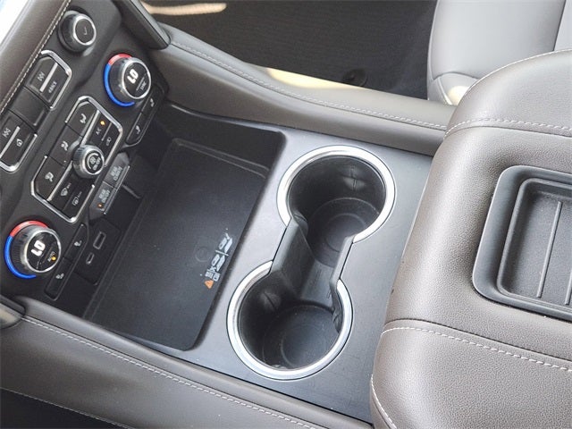 Gideon/Very Dark Atmosphere Leather, 10-Way Power Driver & Passenger Seat Adjusters, 1st & 2nd Row Color-Keyed Carpeted Floor Mats, 2nd Row Pwr Release 60/40 Split-Folding Bench Seat, 3rd Row 60/40 Power-Folding Split-Bench Seat, 3rd row seats: split-bench, 4-Wheel Disc Brakes, 9 Speakers, ABS brakes, Air Conditioning, Alloy wheels, AM/FM radio: SiriusXM with 360L, Apple CarPlay/Android Auto, Auto High-beam Headlights, Auto-Dimming Inside Rear-View Mirror, Auto-dimming Rear-View mirror, Automatic temperature control, Bose 9-Speaker Stereo Audio System Feature, Brake assist, Bright Front & Rear Door Sill Plates, Bumpers: body-color, Color-Keyed Carpeting Floor Covering, Compass, Delay-off headlights, Driver & Front Outboard Passenger Airbags, Driver Alert Package, Driver door bin, Driver vanity mirror, Dual front impact airbags, Dual front side impact airbags, Electronic Stability Control, Emergency communication system: OnStar and Chevrolet connected services capable, Enhanced Driver Information Center, Floor Console w/Storage Area, Four wheel independent suspension, Front anti-roll bar, Front Bucket Seats, Front Center Armrest, Front dual zone A/C, Front High-Back Reclining Bucket Seats, Front reading lights, Fully automatic headlights, Garage door transmitter, Hands-Free Rear Power Programmable Liftgate, HD Surround Vision, Heated 2nd Row Outboard Seats, Heated door mirrors, Heated Driver & Front Passenger Seats, Heated front seats, Heated Steering Wheel, Illuminated entry, Infotainment Display, Lane Change Alert w/Side Blind Zone Alert, Leather-Appointed Seat Trim, LED Daytime Running Lamps, License Plate Front Mounting Package, Low tire pressure warning, Luxury Package, Memory seat, Memory Settings, Memory Settings for Driver, Navigation System, Occupant sensing airbag, Outside Heated Power-Adjustable Mirrors, Outside temperature display, Overhead airbag, Overhead console, Panic alarm, Passenger door bin, Passenger vanity mirror, Power door mirrors, Power driver seat, Power Liftgate, Power passenger seat, Power steering, Power Tilt & Telescopic Steering Column, Power windows, Preferred Equipment Group 1LT, Premium audio system: Chevrolet Infotainment 3 Premium, Premium Smooth Ride Suspension, Radio: Chevrolet Infotainment 3 Premium System, Rain sensing wipers, Rear air conditioning, Rear anti-roll bar, Rear Cross Traffic Alert, Rear Pedestrian Alert, Rear reading lights, Rear seat center armrest, Rear window defroster, Rear window wiper, Remote keyless entry, Remote Start, Roof rack: rails only, Security system, Set of 4 Wheel Locks (LPO), SiriusXM Radio w/360L, Speed control, Speed-sensing steering, Split folding rear seat, Spoiler, Steering wheel mounted audio controls, Tachometer, Telescoping steering wheel, Tilt steering wheel, Traction control, Trip computer, Universal Home Remote, Variably intermittent wipers, Voltmeter, Wheels: 22 x 9 Polished Aluminum, Wireless Charging, Wrapped Steering Wheel.