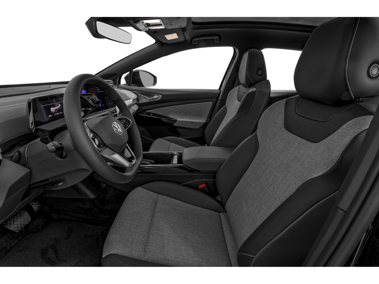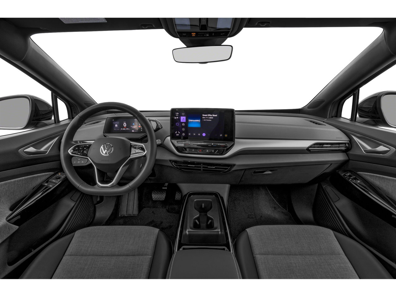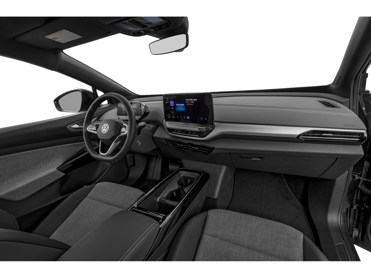 2-in-1 (240V/120V) EV Charging Cable (DISC), 4 Wheel Independent Suspension, 7 Speakers, ABS brakes, Air Conditioning, Alloy wheels, Auto High-beam Headlights, Auto-dimming Rear-View mirror, Automatic temperature control, Brake assist, Bumpers: body-color, Cloth Seating Surfaces, Delay-off headlights, Driver door bin, Driver vanity mirror, Driver's Seat Mounted Armrest, Dual front impact airbags, Dual front side impact airbags, Electronic Stability Control, Emergency communication system: VW Car-Net Safe & Secure 5-year, Exterior Parking Camera Rear, Four wheel independent suspension, Front anti-roll bar, Front Bucket Seats, Front dual zone A/C, Front reading lights, Fully automatic headlights, Heated door mirrors, Heated Front Seats, Heated front seats, Heavy Duty Trunk Liner w/VW CarGo Blocks, Illuminated entry, Low tire pressure warning, Navigation System, Occupant sensing airbag, Outside temperature display, Overhead airbag, Overhead console, Panic alarm, Passenger door bin, Passenger seat mounted armrest, Passenger vanity mirror, Power door mirrors, Power steering, Power windows, Radio data system, Radio: Discover Pro Max w/12 Touchscreen Nav, Rain sensing wipers, Rear anti-roll bar, Rear reading lights, Rear window defroster, Rear window wiper, Remote keyless entry, Rubber Mats Kit, Speed control, Speed-sensing steering, Split folding rear seat, Spoiler, Steering wheel mounted audio controls, Telescoping steering wheel, Tilt steering wheel, Traction control, Trip computer, Turn signal indicator mirrors, Variably intermittent wipers, VW Car-Net Safe & Secure 5-Year Plan, VW Care, Wheels: 19 2-Tone Machined Alloy.