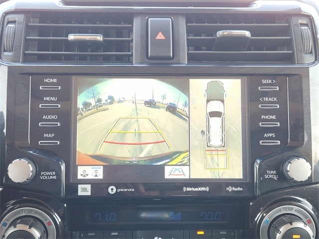 4WD, Graphite Artificial Leather, 15 Speakers, 4-Wheel Disc Brakes, ABS brakes, Air Conditioning, Alloy wheels, AM/FM radio: SiriusXM, Anti-whiplash front head restraints, Apple CarPlay/Android Auto, Auto High-beam Headlights, Auto-dimming Rear-View mirror, Automatic temperature control, Black Lug Nuts, Brake assist, Bumpers: body-color, Compass, Dashcam (TMS), Driver door bin, Driver vanity mirror, Dual front impact airbags, Dual front side impact airbags, Dual Zone Auto Climate Control, Electronic Stability Control, Emergency communication system: Safety Connect (1-year trial), Exterior Parking Camera Rear, Fog Lights, Fox Shocks, Front anti-roll bar, Front Bucket Seats, Front Center Armrest, Front dual zone A/C, Front fog lights, Front reading lights, Front wheel independent suspension, Garage Door Opener, Garage door transmitter: HomeLink, Heated door mirrors, Heated Front Bucket Seats, Heated front seats, Heated Outside Rear-View Mirrors, Heated steering wheel, Illuminated entry, Knee airbag, Leather Shift Knob, Low tire pressure warning, Moonroof w/Tilt Up & Slide, Multi-Terrain Back Monitor, Navigation System, Occupant sensing airbag, Outside temperature display, Overhead airbag, Overhead console, Panic alarm, Passenger door bin, Passenger vanity mirror, Power door mirrors, Power driver seat, Power moonroof, Power passenger seat, Power steering, Power windows, Radio: Premium Audio w/JBL, Rear anti-roll bar, Rear seat center armrest, Rear window defroster, Rear window wiper, Remote keyless entry, Roof rack, Roof Rack, Security system, SofTex Seat Trim, Speed control, Speed-sensing steering, Split folding rear seat, Spoiler, Steering wheel mounted audio controls, Tachometer, Telescoping steering wheel, Tilt steering wheel, Traction control, TRD Pro All Weather Floor Liner, TRD Pro Badging, TRD Pro Exhaust, TRD Pro Package, TRD Shift Knob, Trip computer, Variably intermittent wipers, Wheel Locks, Wheels: 17 Matte Black Flow-Formed TRD Alloy.