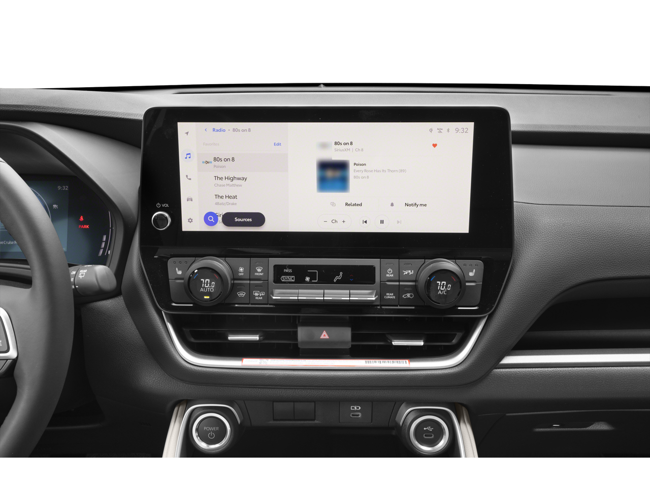 2.5L 4-Cylinder, 18 Aluminum Alloy Wheels, 3rd row seats: split-bench, 4-Wheel Disc Brakes, 6 Speakers, ABS brakes, Air Conditioning, Alloy wheels, AM/FM radio: SiriusXM, Apple CarPlay/Android Auto, Auto High-beam Headlights, Auto-dimming Rear-View mirror, Automatic temperature control, Brake assist, Bumpers: body-color, Delay-off headlights, Driver door bin, Driver vanity mirror, Dual front impact airbags, Dual front side impact airbags, Electronic Stability Control, Emergency communication system: Safety Connect (up to 10-year trial subscription), Exterior Parking Camera Rear, Four wheel independent suspension, Front anti-roll bar, Front Bucket Seats, Front Center Armrest, Front dual zone A/C, Front reading lights, Fully automatic headlights, Garage door transmitter: HomeLink, Heated door mirrors, Heated Front Seats, Heated front seats, Illuminated entry, Knee airbag, Leather Shift Knob, Leather steering wheel, Low tire pressure warning, Navigation system: Drive Connect Cloud Navigation (1-year trial subscription), Occupant sensing airbag, Outside temperature display, Overhead airbag, Overhead console, Panic alarm, Passenger door bin, Passenger vanity mirror, Power door mirrors, Power driver seat, Power Liftgate, Power passenger seat, Power steering, Power windows, Radio: 12.3 Toyota Audio Multimedia, Rear air conditioning, Rear anti-roll bar, Rear reading lights, Rear window defroster, Rear window wiper, Reclining 3rd row seat, Remote keyless entry, Security system, SofTex Seat Trim, Speed control, Speed-sensing steering, Split folding rear seat, Spoiler, Steering wheel mounted audio controls, Telescoping steering wheel, Tilt steering wheel, Traction control, Trip computer, Turn signal indicator mirrors, Variably intermittent wipers.