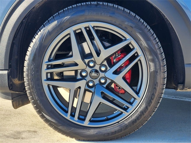 10 Speakers, 110V/150W AC Power Outlet, 2nd Row Captain's Chairs w/E-Z Entry & Armrest, 2nd Row Heated Seats, 3rd row seats: bench, 4-Wheel Disc Brakes, ABS brakes, Air Conditioning, Alloy wheels, AM/FM radio: SiriusXM with 360L, Ambient Lighting, Apple CarPlay/Android Auto, Auto High-beam Headlights, Auto-Dimming Interior Rear-View Mirror, Automatic temperature control, Brake assist, Bumpers: body-color, Compass, Delay-off headlights, Driver door bin, Driver vanity mirror, Dual front impact airbags, Dual front side impact airbags, Electronic Stability Control, Emergency communication system: 911 Assist, Equipment Group 300A Standard Package, Exterior Parking Camera Rear, Four wheel independent suspension, Front & 2nd Rows Floor Liners w/Carpet Floor Mats, Front anti-roll bar, Front Bucket Seats, Front Center Armrest, Front dual zone A/C, Front fog lights, Front reading lights, Fully automatic headlights, Garage door transmitter, Heated door mirrors, Heated front seats, Heated steering wheel, Heated Unique Cloth Captain's Chairs, Illuminated entry, Internet access capable: FordPass Connect 5G, Knee airbag, Leather steering wheel, Low tire pressure warning, Memory Driver's Seat, Navigation System, Occupant sensing airbag, Outside temperature display, Overhead airbag, Overhead console, Panic alarm, Passenger door bin, Passenger vanity mirror, Performance Brakes, Power door mirrors, Power driver seat, Power Liftgate, Power passenger seat, Power steering, Power windows, Power-Folding Sideview Mirrors w/Autofold, Premium Package, Radio: B&O Sound System by Bang & Olufsen, Rain-Sensing Wipers (Front Only), Rear air conditioning, Rear anti-roll bar, Rear reading lights, Rear window defroster, Rear window wiper, Red Painted Perf Front & Rear Brake Calipers, Remote keyless entry, Security system, Speed control, Speed-sensing steering, Speed-Sensitive Wipers, Split folding rear seat, Spoiler, ST-Line Street Pack, Steering wheel mounted audio controls, Tachometer, Telescoping steering wheel, Tilt steering wheel, Traction control, Trip computer, Variably intermittent wipers, Wheels: 21 Magnetite-Painted Aluminum, Wireless Charging Pad.