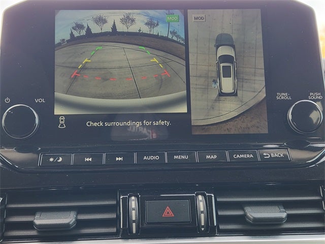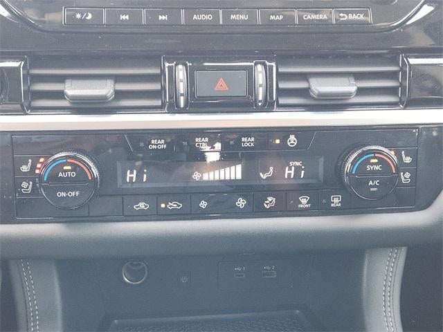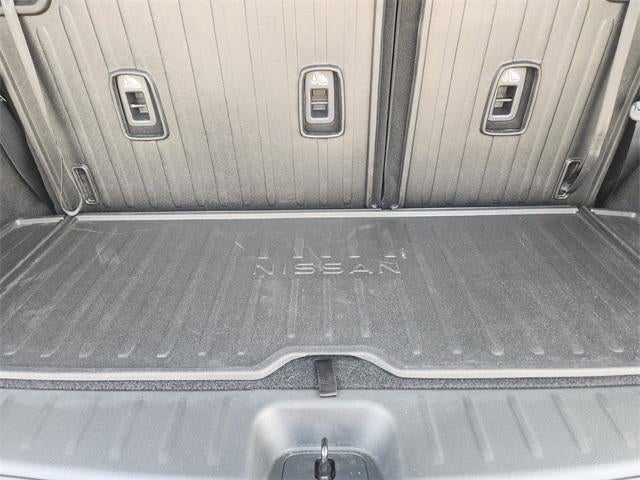 13 Speakers, 3rd row seats: bench, 4-Wheel Disc Brakes, ABS brakes, Air Conditioning, Alloy wheels, AM/FM radio: SiriusXM, Auto High-beam Headlights, Auto tilt-away steering wheel, Auto-dimming Rear-View mirror, Automatic temperature control, Bench Seat Carpeted Floor Mats (set of 4), Black Splash Guards (set of 4), Bodyside moldings, Bose Premium Audio System, Brake assist, Bumpers: body-color, Cargo Area Protector, Cargo Net, Cargo Package, Climate Controlled Front Bucket Seats, Cross Bars, Delay-off headlights, Driver door bin, Driver vanity mirror, Dual front impact airbags, Dual front side impact airbags, Electronic Stability Control, Emergency communication system, Exterior Parking Camera Rear, First Aid, Four wheel independent suspension, Front anti-roll bar, Front Bucket Seats, Front Center Armrest, Front dual zone A/C, Front reading lights, Fully automatic headlights, Garage door transmitter: HomeLink, Heads-Up Display, Heated door mirrors, Heated front seats, Heated rear seats, Heated steering wheel, Illuminated entry, Knee airbag, Leather steering wheel, Low tire pressure warning, Memory seat, Navigation system: NissanConnect with Navigation and Services, Nissan USB Charging Cable Set, NissanConnect featuring Apple CarPlay and Android Auto, NissanConnect with Navigation and Services, Occupant sensing airbag, Outside temperature display, Overhead airbag, Overhead console, Panic alarm, Passenger door bin, Passenger vanity mirror, Power door mirrors, Power driver seat, Power Liftgate, Power moonroof, Power passenger seat, Power steering, Power windows, Radio data system, Radio: AM/FM Audio System, Rain sensing wipers, Rear air conditioning, Rear anti-roll bar, Rear reading lights, Rear seat center armrest, Rear side impact airbag, Rear window defroster, Rear window wiper, Reclining 3rd row seat, Remote keyless entry, Security system, Semi-Aniline Leather-Appointed Seating Surfaces, Speed control, Speed-sensing steering, Speed-Sensitive Wipers, Split folding rear seat, Spoiler, Steering wheel memory, Steering wheel mounted audio controls, Tachometer, Telescoping steering wheel, Tilt steering wheel, Traction control, Trip computer, Turn signal indicator mirrors, Variably intermittent wipers, Ventilated front seats, Wheels: 20 x 8J Machined Alloy.