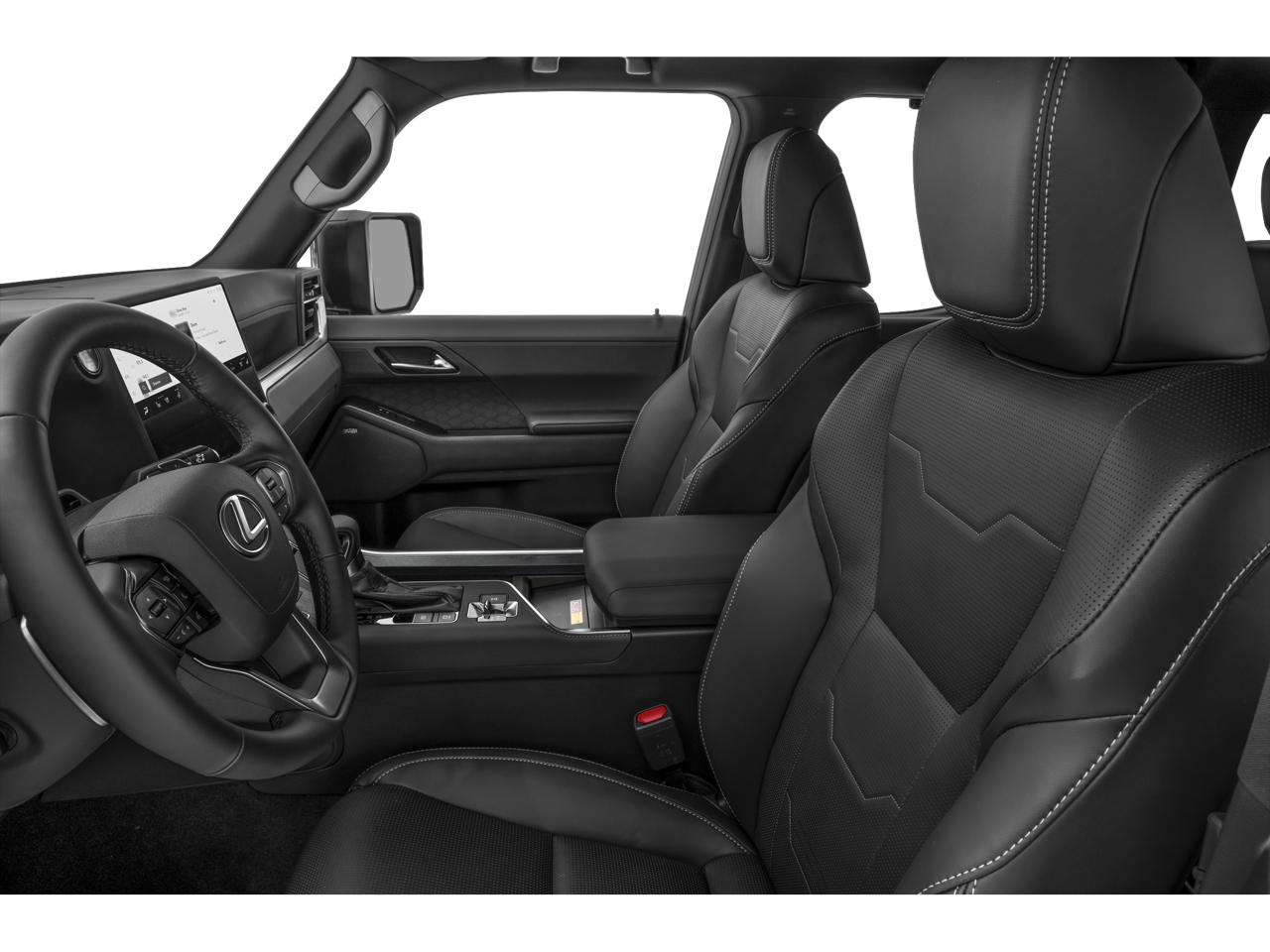 10.7 Color Head-Up Display, 21 Speakers, 3rd row seats: split-bench, 4-Wheel Disc Brakes, ABS brakes, Adaptive suspension, Air Conditioning, Alloy wheels, AM/FM radio, Anti-whiplash front head restraints, Apple CarPlay/Android Auto, Auto High-beam Headlights, Auto tilt-away steering wheel, Auto-dimming door mirrors, Auto-dimming Rear-View mirror, Automatic temperature control, Brake assist, Bumpers: body-color, Cold Area Package, Delay-off headlights, Digital Key, Driver door bin, Driver vanity mirror, Dual front impact airbags, Dual front side impact airbags, Electronic Stability Control, Emergency communication system: Safety Connect (5-year minimum), Exterior Parking Camera Rear, Fast-Response Interior Heater, Four wheel independent suspension, Front anti-roll bar, Front Bucket Seats, Front Center Armrest w/Storage, Front dual zone A/C, Front fog lights, Front reading lights, Fully automatic headlights, Garage door transmitter: HomeLink, Genuine wood console insert, Headlamp Washer, Heated and Ventilated Front Seats, Heated door mirrors, Heated front seats, Heated rear seats, Illuminated entry, Knee airbag, Leather Shift Knob, Leather steering wheel, Lexus Interface with 14 Touchscreen Display, Low tire pressure warning, Luxury Plus Package, Memory seat, Navigation system: Drive Connect Cloud Navigation (3-year trial subscription included), Occupant sensing airbag, Overhead airbag, Panic alarm, Passenger door bin, Passenger vanity mirror, Power door mirrors, Power driver seat, Power Liftgate, Power passenger seat, Power steering, Power windows, Premium Paint, Radio: Mark Levinson Premium Surround Sound System, Rear air conditioning, Rear anti-roll bar, Rear reading lights, Rear seat center armrest, Rear side impact airbag, Rear window defroster, Rear window wiper, Remote keyless entry, Security system, Semi-Aniline Leather Seat Trim, Speed control, Speed-sensing steering, Split folding rear seat, Spoiler, Steering wheel memory, Steering wheel mounted audio controls, Tachometer, Telescoping steering wheel, Tilt steering wheel, Traction control, Traffic Jam Assist, Trip computer, Turn signal indicator mirrors, Variably intermittent wipers, Ventilated front seats, Wheels: 22 12-Spoke Forged Alloy with Dark Gray, Windshield Wiper De-Icer.